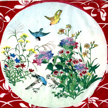 16 Opium poppy (Papaver somniferum), marvel-of-Peru (Mirabilis jalapa) and Eurasian tree sparrow (Passer montanus)