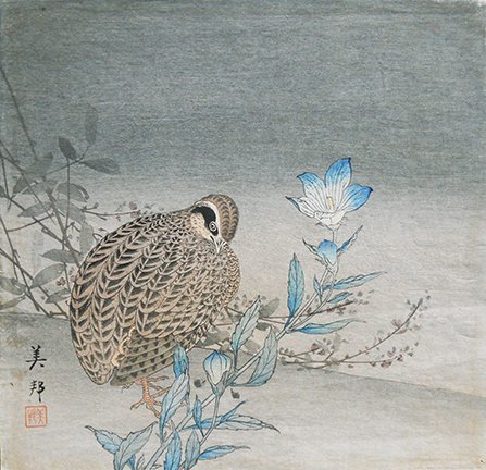 5 Chinese quince (Chaenomeles speciosa) and little egret (Egretta garzetta)