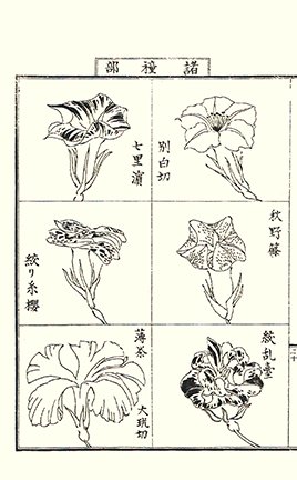 6 Tree peony (Paeonia suffruticosa), camellia (Camellia japonica), cherry (Prunus sp.), sunset hibiscus (Hibiscus manihot), bunchflower daffodil (Narcissus tazetta) and florist’s chrysanthemum (Chrysanthemum grandiflorum)