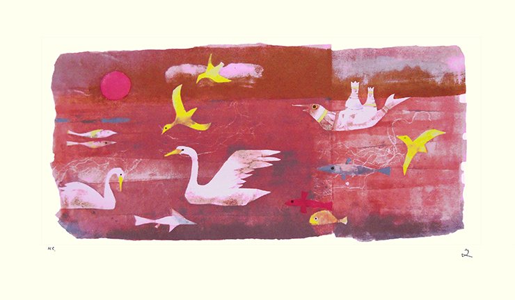 18 Catchfly (Lychnis sp.), unknown flowers, varied tit (Sittiparus varius), Eurasian tree sparrow (Passer montanus), goose (Family Anatidae) and unknown bird