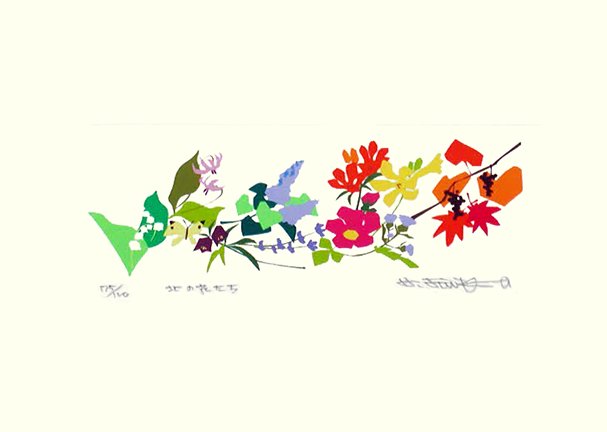 25 Oxeye daisy (Chrysanthemum leucanthmum), bigleaf hydrangea (Hydrangea macrophylla), black-eyed susan (Rudbeckia sp.), orange day-lily (Hemerocallis fulva), rugosa rose (Rosa rugosa), Japanese morning glory (Ipomoea nil), morning-star lily (Lilium concolor), globe amaranth (Gomphrena globosa), Kamchatka lily (Fritillaria camschatcensis), Japanese primrose (Primula sieboldii), kobus magnolia (Magnolia kobus), lilac (Syringa vulgaris), lily-of-the-valley (Convallaria majalis), Japanese trout lily (Erythronium japonicum) and unknown flower