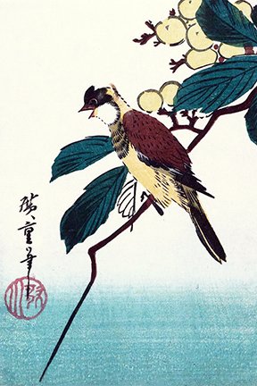 167 Morning-star lily (Lilium concolor) and meadow bunting (Emberiza cioides)