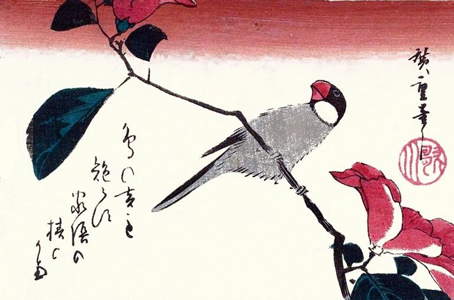 172 Japanese wisteria (Wisteria floribunda) and Java sparrow (Padda oryzivora)
