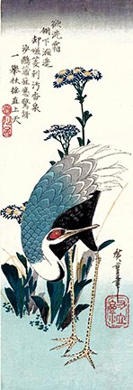 237 Balloon flower (Platycodon grandiflorus), scabious patrinia (Patrinia scabiosifolia), eulalia grass (Miscanthus sinensis) and red-crowned crane (Grus japonensis)