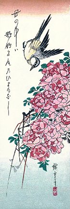 292 China rose (Rosa chinensis) and gray wagtail (Motacilla cinerea)