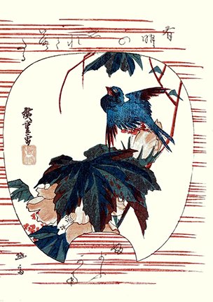 299 Weeping cherry (Prunus subhirtella) and blue-and-white flycatcher (Cyanoptila cyanomelana)