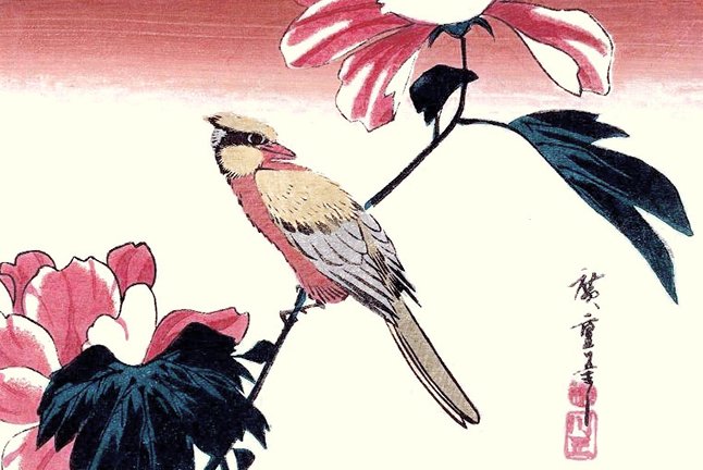 315 Hardy begonia (Begonia grandis) and black-naped oriole (Oriolus chinensis)