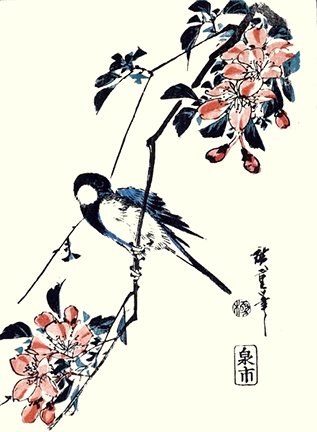 336 Rose-of-sharon (Hibiscus syriacus) and great tit (Parus major)