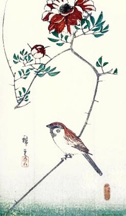 375 Hardy begonia (Begonia grandis) and Eurasian tree sparrow (Passer montanus)