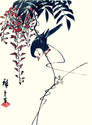 436 Japanese wisteria (Wisteria floribunda) and black bulbul (Hypsipetes leucocephalus)