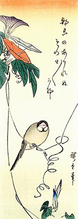 2 Japanese iris (Iris ensata) and little egret (Egretta garzetta)