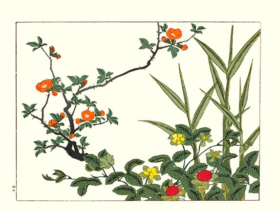 39 Japanese plum (Prunus salicina), fiveleaf akebia (Akebia quinata) and red elderberry (Sambucus racemosa)