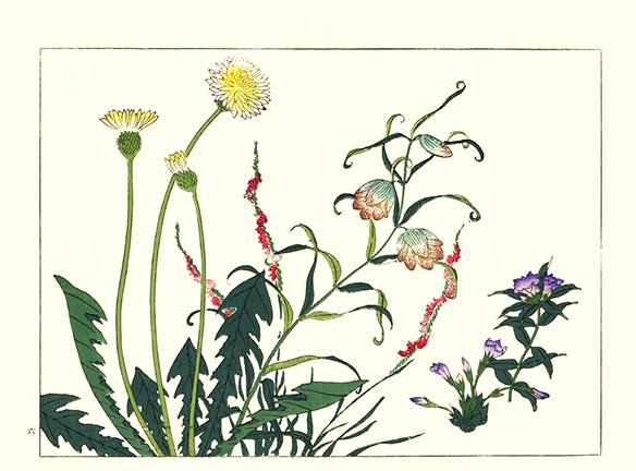 5 Field horsetail (Equisetum arvense), violet (Viola sp.) and dandelion (Taraxacum sp.)