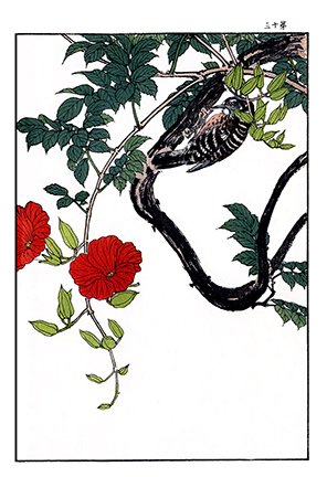 43 Fukien orchid (Cymbidium ensifolium) and rustic bunting (Emberiza rustica)