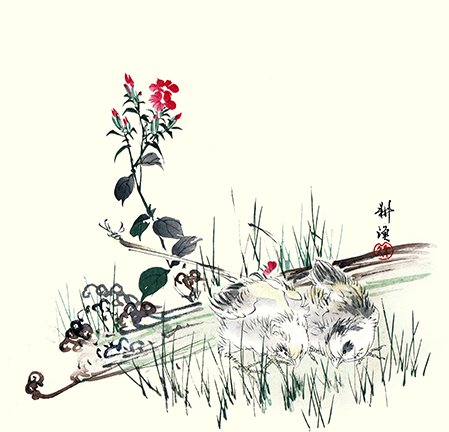 14 Pheasant’s eye (Adonis amurensis) and Japanese bush-warbler (Cettia diphone)