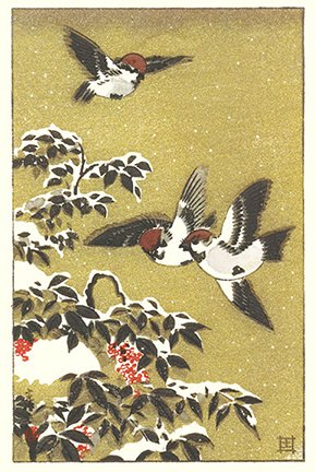 3 Heavenly bamboo (Nandina domestica) and Eurasian tree-sparrow (Passer montanus)