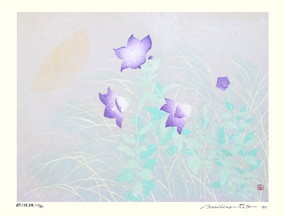 MS3 Japanese morning glory (Ipomoea nil) by Morihiro Sato (1943-), woodblock