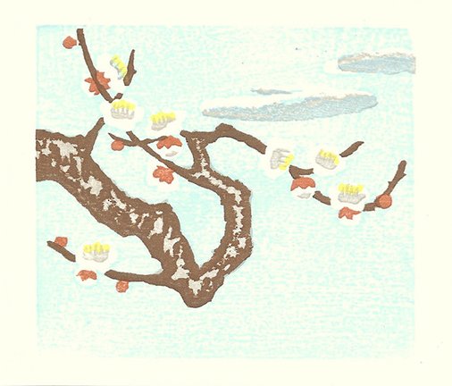 YN4 Japanese laurel (Aucuba japonica) by Yoshitaka Nakao (1911-1994), woodblock