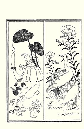3 Japanese rose (Rosa multiflora), fringed pink (Dianthus superbus) and oriental stork (Ciconia boyciana)