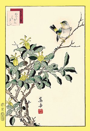 20a APRICOT (Prunus armeniaca) and white-headed munia (Lonchura maja)