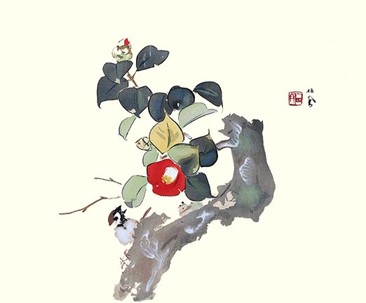 8 Plum (Prunus mume) and Java sparrow (Padda oryzivora)