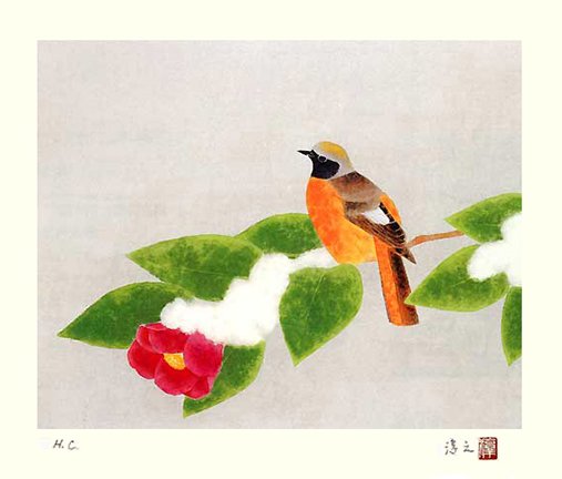 15 Violet (Viola sp.) and Daurian redstart (Phoenicurus auroreus)