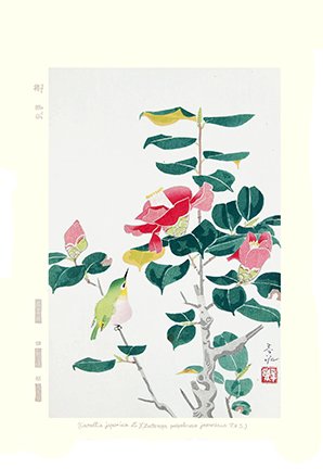 3 Chinese quince (Chaenomeles speciosa) and meadow bunting (Emberiza cioides)