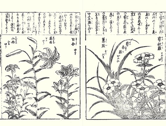 38 Cockscomb (Celosia cristata) and hardy begonia (Begonia grandis), wind orchid (Neofinetia falcata) and cymbidium orchid (Cymbidium sp.)