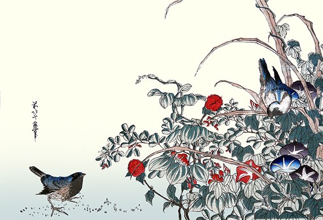 13 China pink (Dianthus chinensis) and Eurasian tree sparrow (Passer montanus)