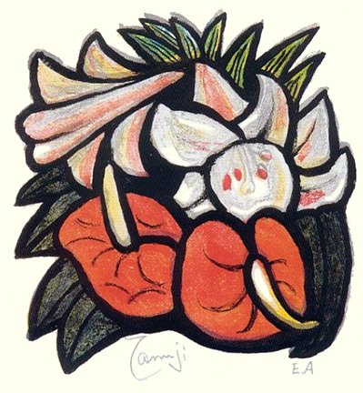 5 Cattleya orchid (Cattleya sp.) and flamingo-flower (Anthurium andreanum)