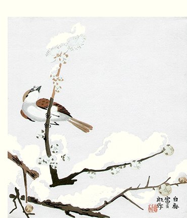 144 Bigleaf hydrangea (Hydrangea macrophylla) and gray wagtail (Motacilla cinerea)