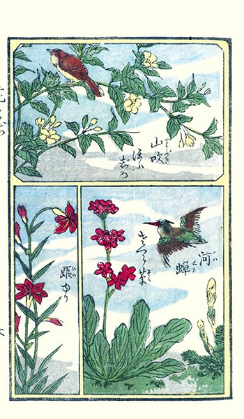 10 Left – buglossoides (Buglossoides zollingeri) and gray wagtail (Motacilla cinerea); Right – hawk (Accipiter sp.)