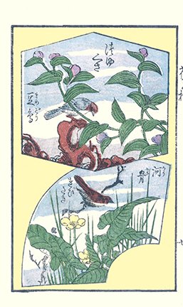 13 Top – sacred lily (Rohdea japonica) and canary (Serinus canaria); Bottom – Chinese milk-vetch (Astragalus sinicus) and Japanese quail (Coturnix japonica)