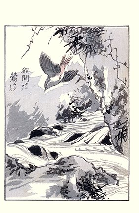2 Weeping forsythia (Forsythia suspensa) and canary (Serinus canaria)