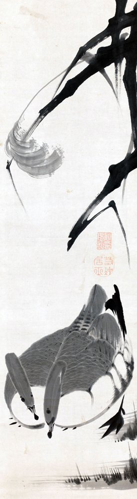 39 Plum (Prunus mume), tree peony (Paeonia suffruticosa), red-crowned crane (Grus japonensis) and blue-and-white flycatcher (Cyanopica cyanomelana)