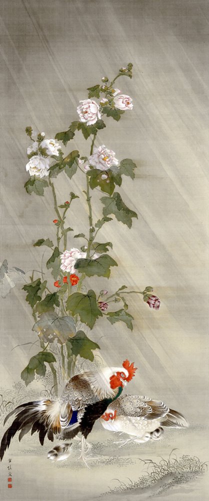 32 Plum (Prunus mume), rose (Rosa sp.) and red-crowned crane (Grus japonensis)