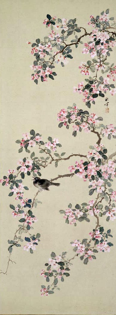 1 Plum (Prunus mume), bigleaf hydrangea (Hydrangea macrophylla), chrysanthemum (Chrysanthemum sp.), common kingfisher (Alcedo atthis), Eurasian tree sparrow (Passer montanus), light-vented bulbul (Pycnonotus sinensis) and mandarin duck (Aix galericulata)