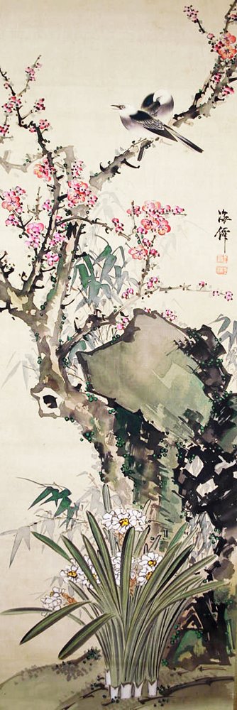 9 China rose (Rosa chinensis) and green peafowl (Pavo muticus)