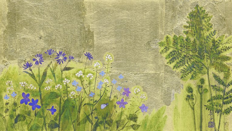 24 Eulalia grass (Miscanthus sinensis), aster (Aster sp.), unknown flowers and impatiens (Impatiens textorii)