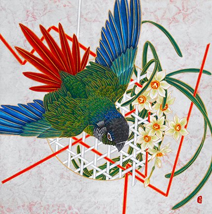 15 Pea (Pisum sativum) and green-cheeked parakeet (Pyrrhula molinae)