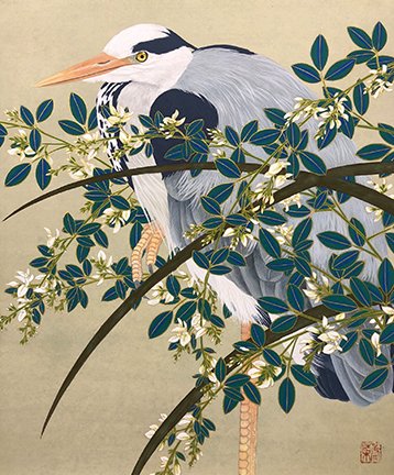 78 Unknown flower and mandarin duck (Aix galericulata)