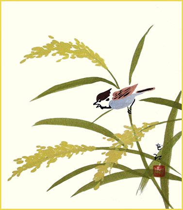 8 Indian chrysanthemum (Chrysanthemum indicum) and Eurasian tree sparrow (Passer montanus)
