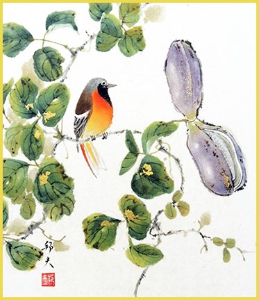 24 Plum (Prunus mume) and Japanese bush-warbler (Cettia diphone)