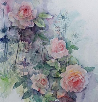 58 Rose (Rosa sp.) and stonecrop (Family Crassulaceae)