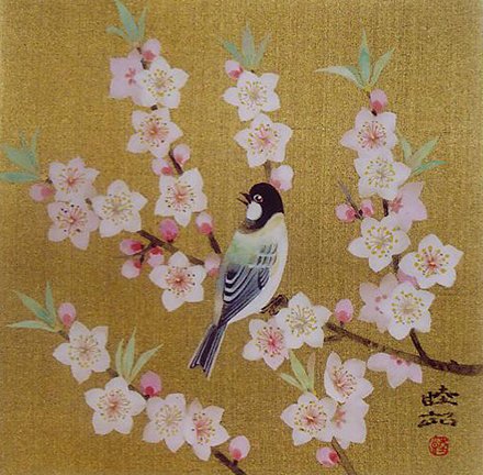 2 Japanese persimmon (Diospyros kaki) and white wagtail (Motacilla alba)