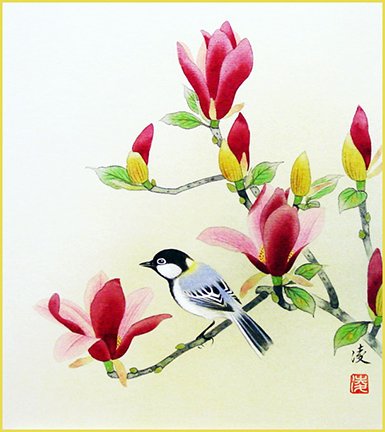13 Pomegranate (Punica granatum) and Japanese white-eye (Zosterops japonicus)