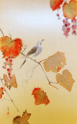 117 Porcelain-berry (Ampelopsis brevipedunculata) and brown-eared bulbul (Ixos amaurotis)