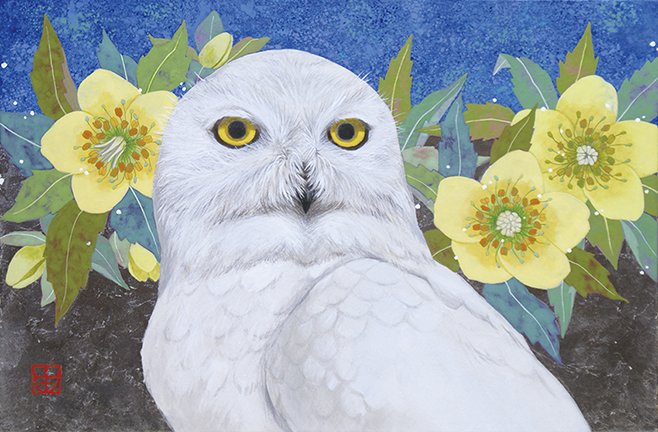 155 Bigleaf hydrangea (Hydrangea macrophylla) and snowy owl (Bubo scandiacus)