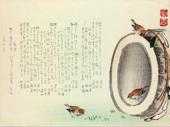 33 Cherry petals (Prunus sp.) and Eurasian tree sparrow (Passer montanus) by Yuka