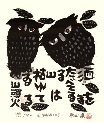 16 Ural owl (Strix uralensis) by Hiroto Norikane (1949-), intaglio